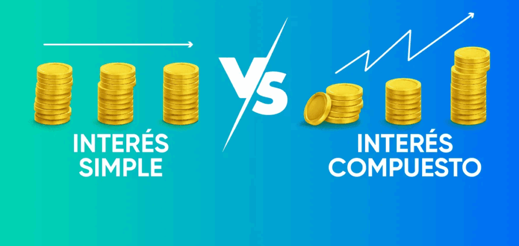 Con interés simple, los rendimientos se calculan únicamente sobre el capital inicial, generando una progresión aritmética. En contraste, el interés compuesto genera una progresión geométrica.